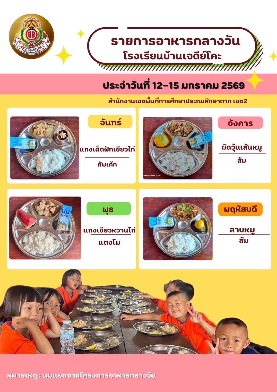 เมนูอาหารกลางวันที่ 12 - 15 มกราคม 2569