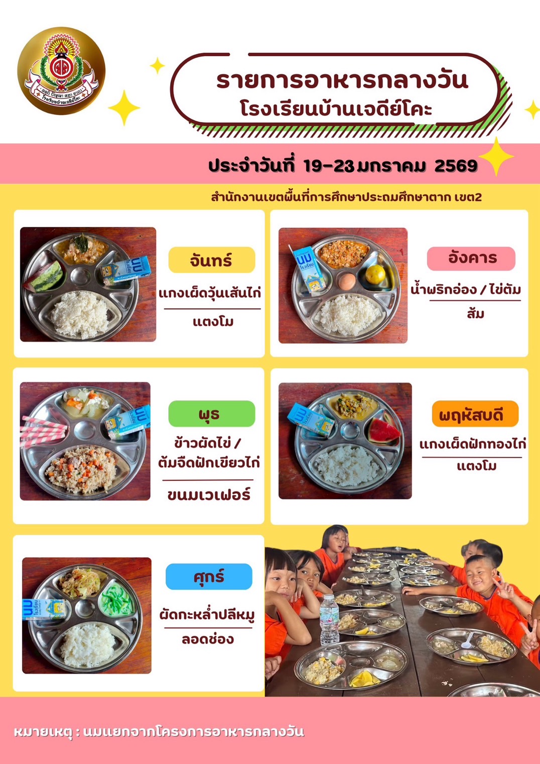 เมนูอาหารกลางวันที่ 19 - 23 มกราคม 2569