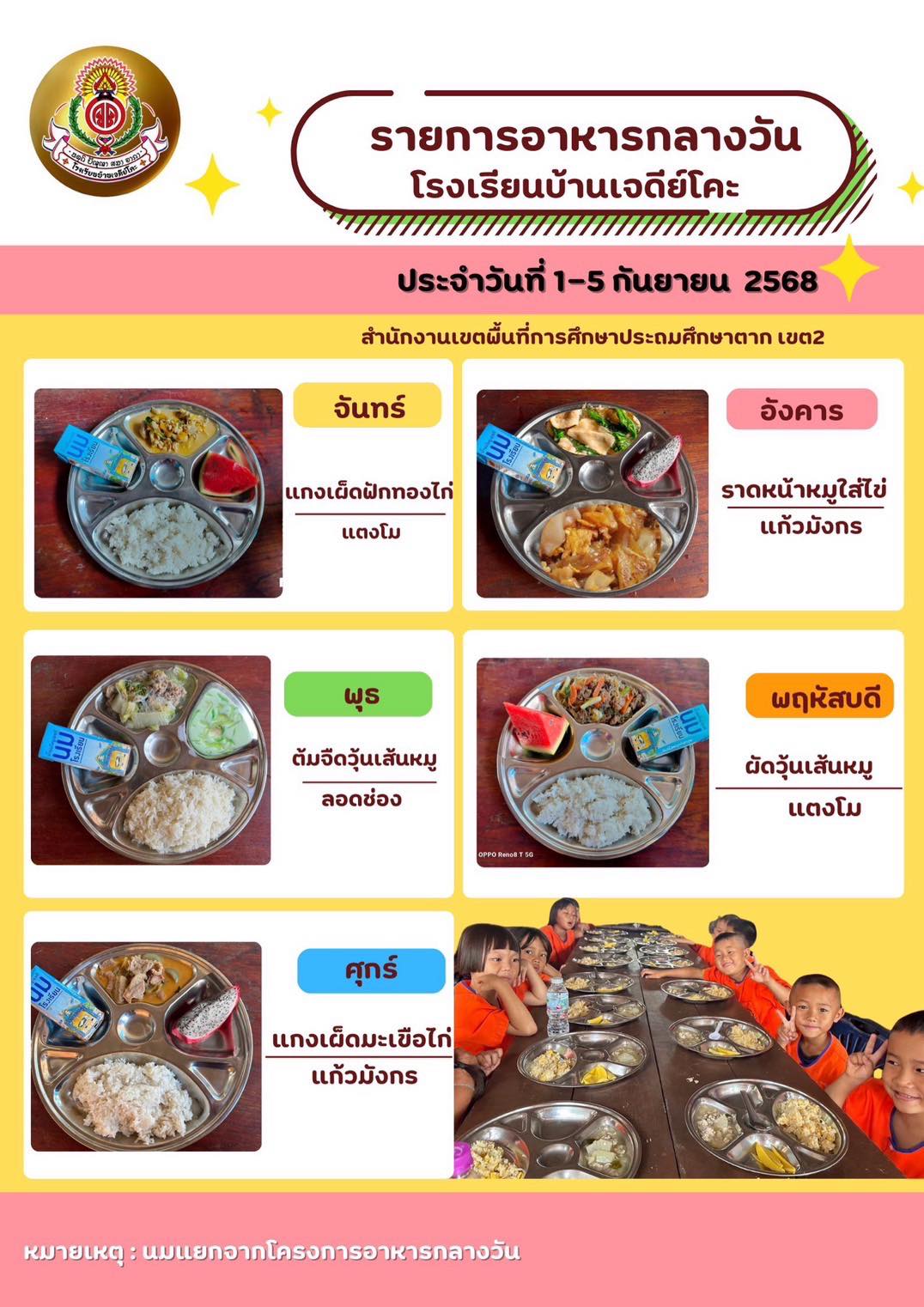 เมนูอาหารกลางวันที่ 1 - 5 กันยายน 2568