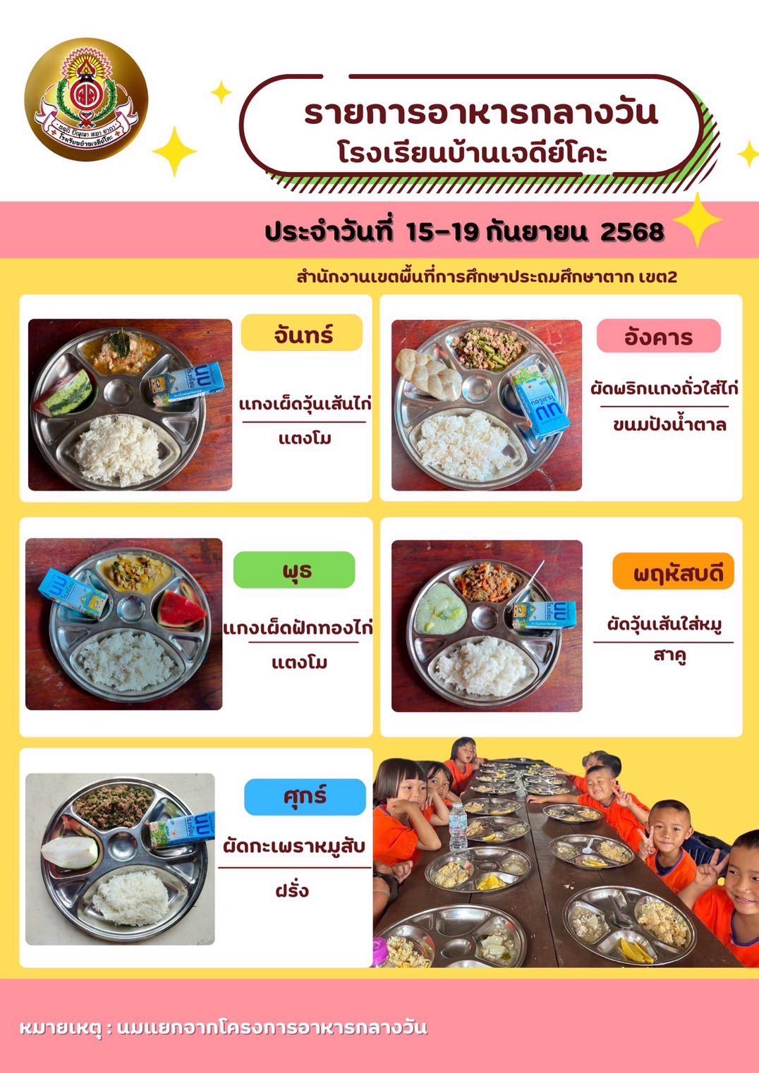 เมนูอาหารกลางวันที่ 15 - 19 กันยายน 2568