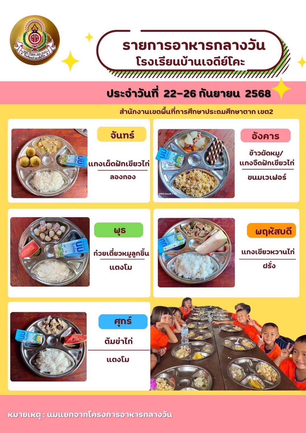 เมนูอาหารกลางวันที่ 22 - 26 กันยายน 2568